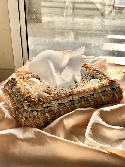 Transform any table into a centerpiece with this exquisite Shells tissue box cover, perfect for weddings, dinners, and upscale events in Pakistan.